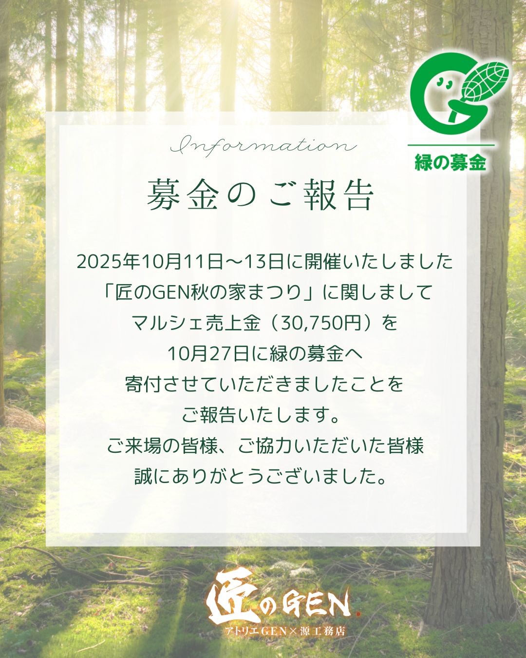 10月27日に【緑の募金】へ寄付させていただきましたことをご報告いたします🌳🌿
